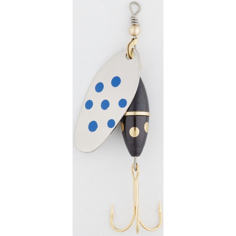 Ce modèle se distingue par une palette offrant une rotation régulière et des vibrations puissantes. Son corps compact facilite les lancers longs et précis. Initialement développée pour le brochet, elle s’avère également efficace en rivière et en lac sur truites et perches. Sa robustesse en fait un leurre fiable pour une utilisation intensive.